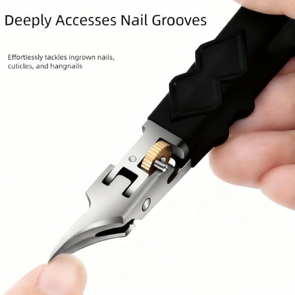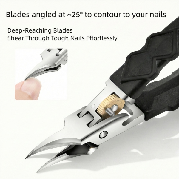 Precyzyjne stalowe końcówki sięgają głęboko w rowki, aby dokładnie przyciąć wrastające paznokcie.